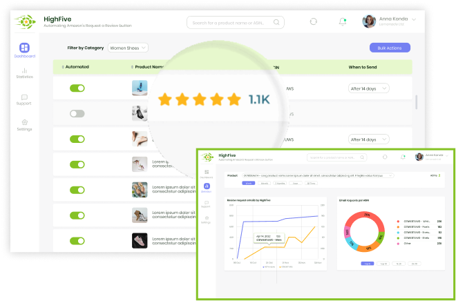 HighFive is the most efficient and safe way to get Product reviews and Seller feedback. It is 100% Amazon compliant and 100% automatic, so collecting reviews and feedback becomes a breeze.